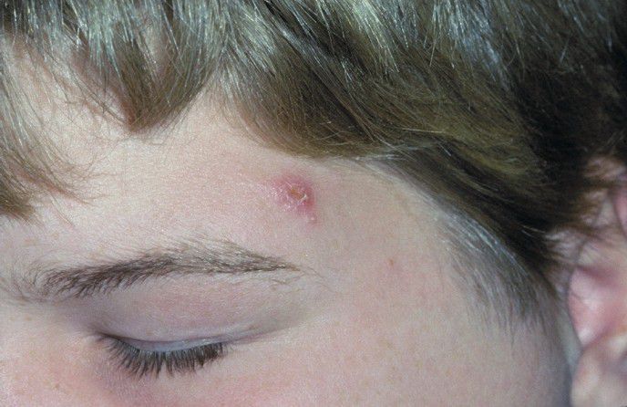 . Papule that developed at initial site of injury.