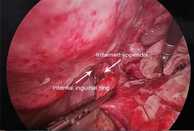 The term Amyand's hernia therefore refers to an incarcerated hernia containing appendix, which may be normal or inflamed