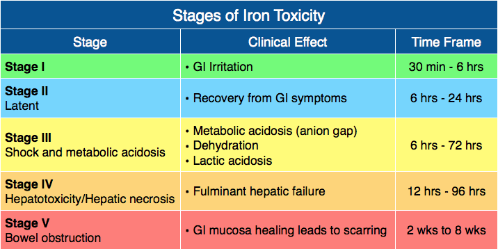 Stages of iron toxicity