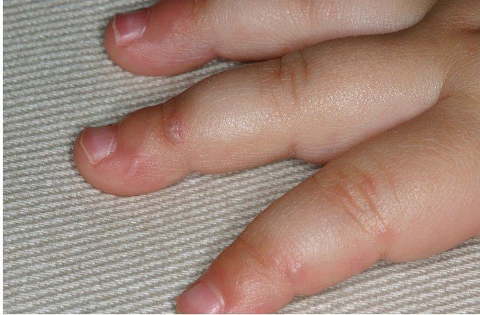 . Numerous cutaneous vesicles on the sides of the fingers.