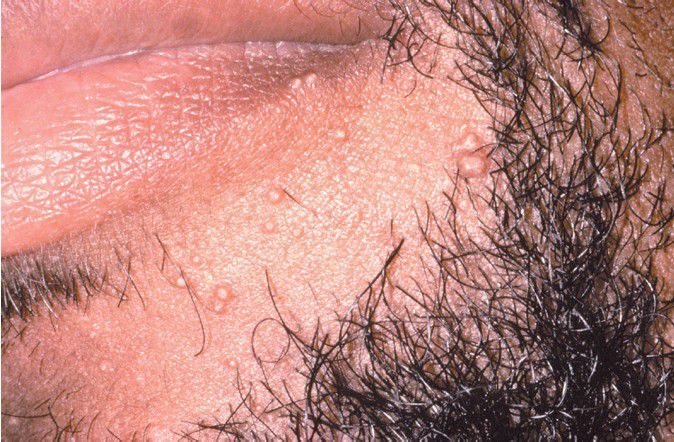 . Numerous perioral papules.