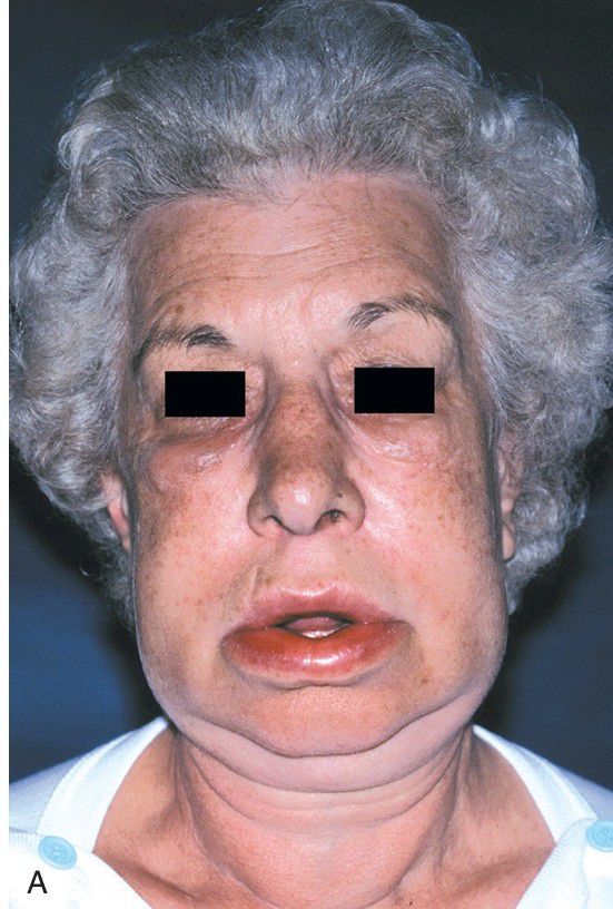 Soft, nontender tissue swelling of the face arose relatively rapidly after dental treatment.