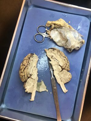 It is similar, but the brain stem extends parallel to the cerebellum, not perpendicular.