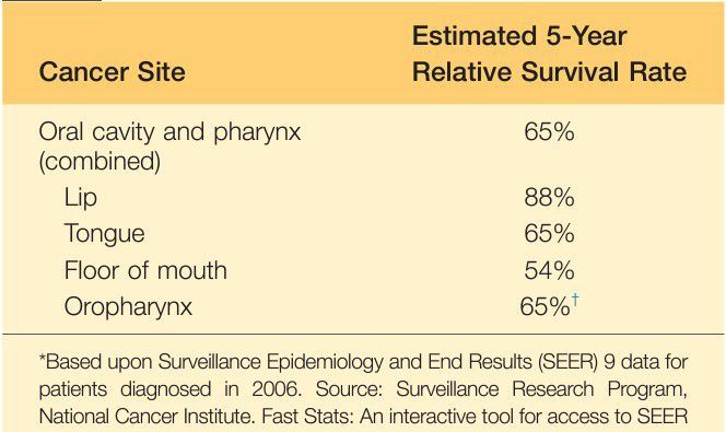 Overall 5-year Relative Survival Estimates for Oral and Pharyngeal Cancers