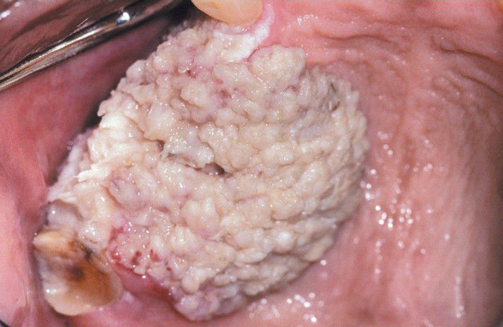 . Large, exophytic, papillary mass of the maxillary alveolar ridge
