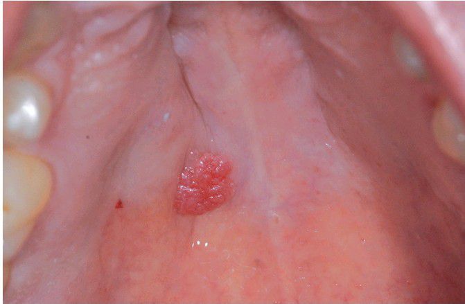 Exophytic papillary mass on the palate.