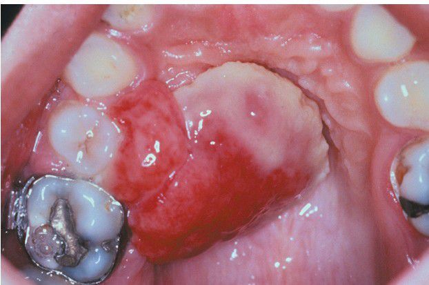 . Unusually large lesion arising from the palatal gingiva in association with an orthodontic band. The patient was pregnant.
