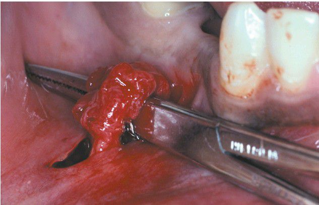 . Note the irregular nodular proliferation along the mental nerve that is being exposed at the time of surgery.