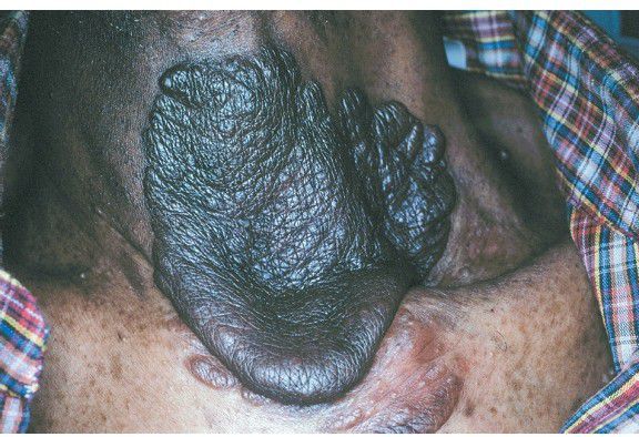 Baggy, pendulous neurofibroma of the lower neck.