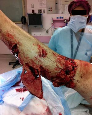 Anthony and 3 friends were spearfishing off the coast of West Palm Beach, FL. After shooting a large 50lbs cobia a large bull shark came out of the deep. At that time Anthony thought to look down… but it was too late. A large bull shark already had its jaws wide open and clamped on to his left leg. The first bite severed most of the nerves, tendons, and ligaments in his knee and ankle at the same time. The initial bite measured about 17.5 inches across. The shark bit down repeatedly and left several concentric wounds on his leg. The last nearly removed most of Anthony’s calf. When they surfaced… the sea was crimson with fresh blood. Once on board, his dive partners administered a tourniquet and compression bandages. The boat raced in the inlet and was met by an ambulance that rushed him to St. Mary’s Medical Center. In all Anthony spent over 5 and a half weeks in the hospital undergoing several surgeries to save his leg. The team performed several major wound cleanings, removing infected and damaged tissues, as well as less invasive cleaning daily. After 2 years of intensive physical therapy, Anthony has regained the ability to walk. Left with an ever present scar as a reminder of his ordeal, Anthony remains forever thankful to the team of people (friends and doctors) that saved his life. Since the attack, Anthony has been back in the water diving and fishing with his friends. Credit: Anthony Segrich at sharkbiteresearch.org