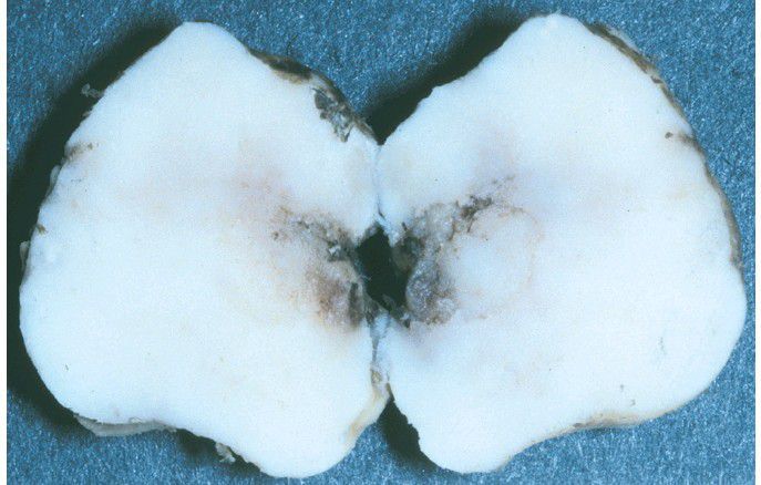 . Gross specimen showing a wellcircumscribed tumor that shelled out in one piece and subsequently was hemisected.