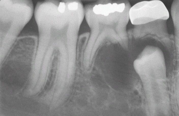 This cyst involves the crown of an unerupted premolar. Radiographically, this lesion cannot be differentiated from a dentigerous cyst.