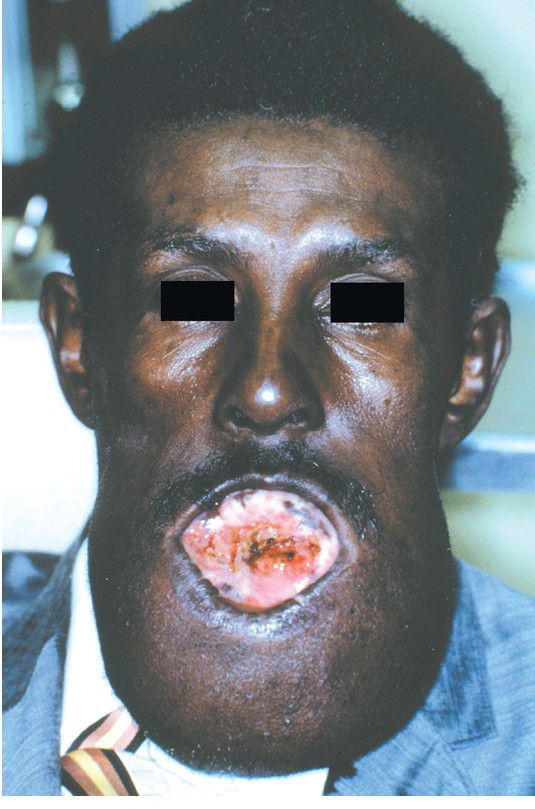 . Massive tumor of the anterior mandible. (Courtesy of Dr. Ronald Baughman.)