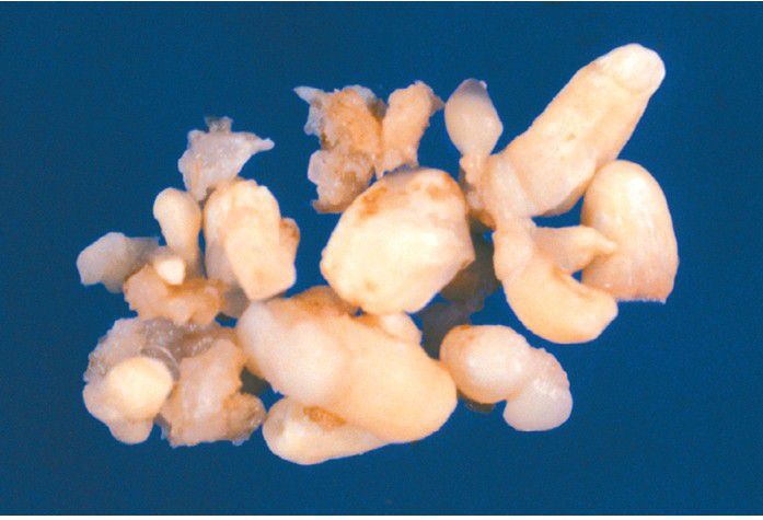 Surgical specimen consisting of more than 20 malformed toothlike structures.