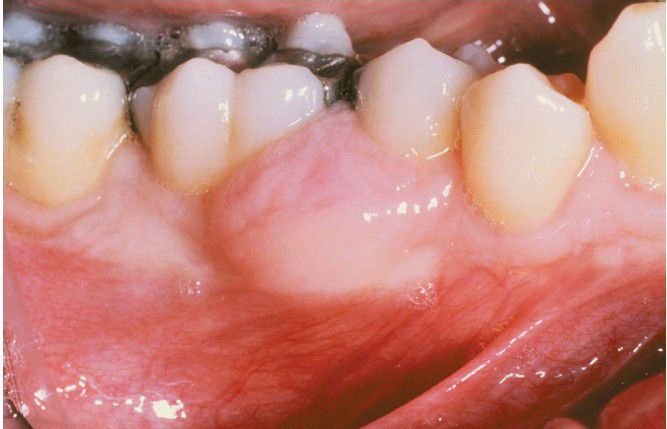 This sessile gingival mass cannot be clinically distinguished from the common peripheral ossifying fibroma.