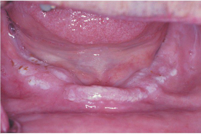 . Although tongue lesions are more common in patients with pachyonychia congenita, other oral mucosal sites exposed to minor trauma, such as the alveolar mucosa, may develop thickened white patches.