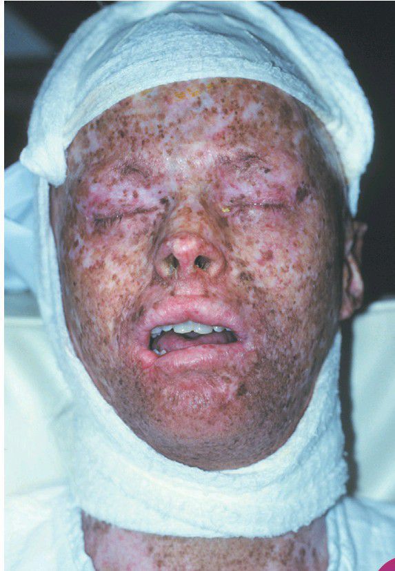 The atrophic changes and pigmentation disturbances shown are characteristic of xeroderma pigmentosum.
