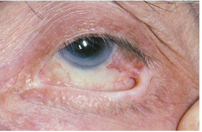 Although the earliest ocular changes are difficult to identify, patients with ocular involvement may show adhesions (symblepharons) between the bulbar and palpebral conjunctivae before severe ocular damage occurs.