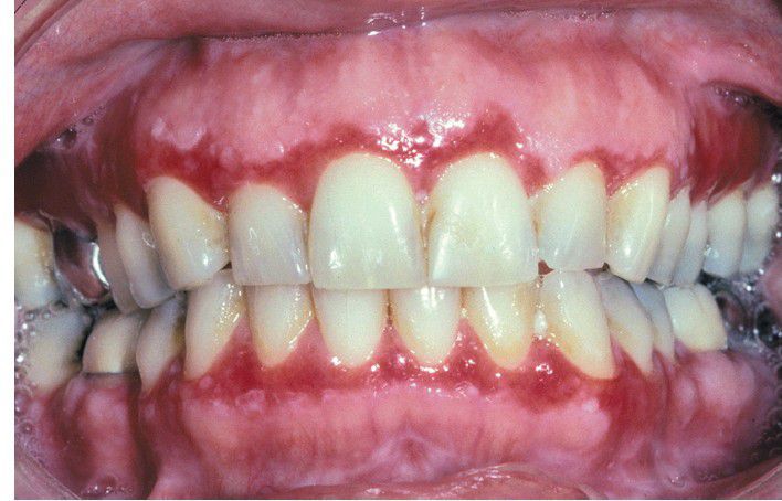 Erosive lichen planus often appears as a desquamative gingivitis, producing gingival erythema and tenderness.