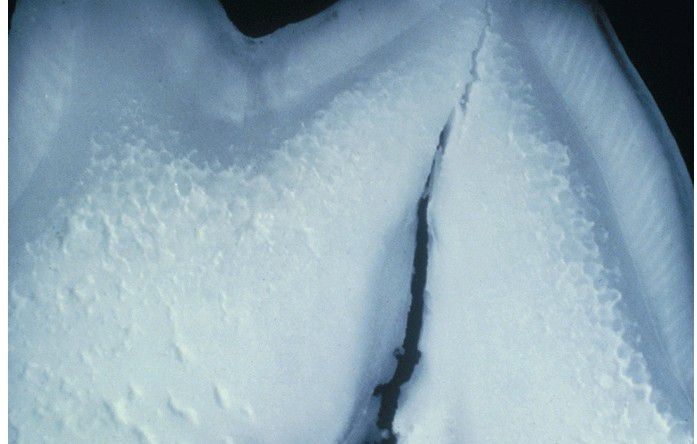 Ground section of tooth depicting a pulp horn extends to the dentinoenamel junction. (Courtesy of Dr. Carl Witkop.)