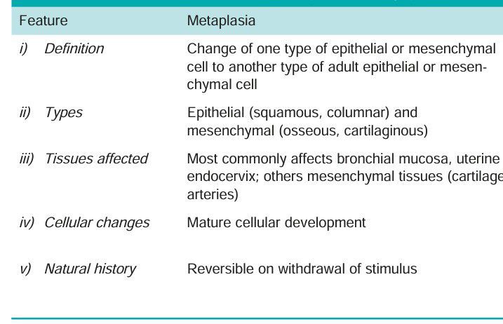 Metaplasia is defined as a reversible change of one type of epithelial or mesenchymal adult cells to another type of adult epithelial or mesenchymal cells, usually in response to abnormal stimuli, and often reverts back to normal on removal of stimulus. H