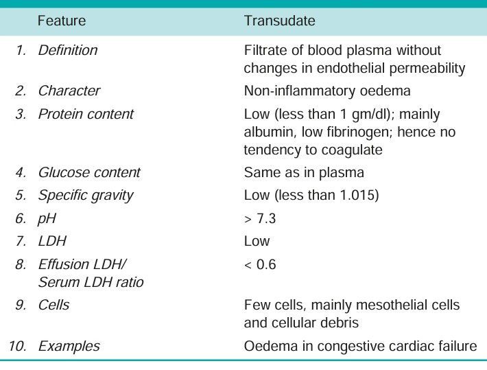 Depending upon fluid composition, oedema fluid may be: transudate which is more often the case, such as in oedema of cardiac and renal disease