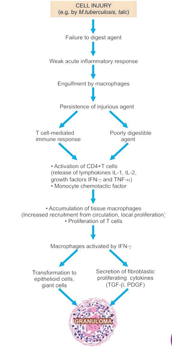 Mechanism of evolution of a granuloma (IL=interleukin; IFN= interferon; TNF = tumour necrosis factor).