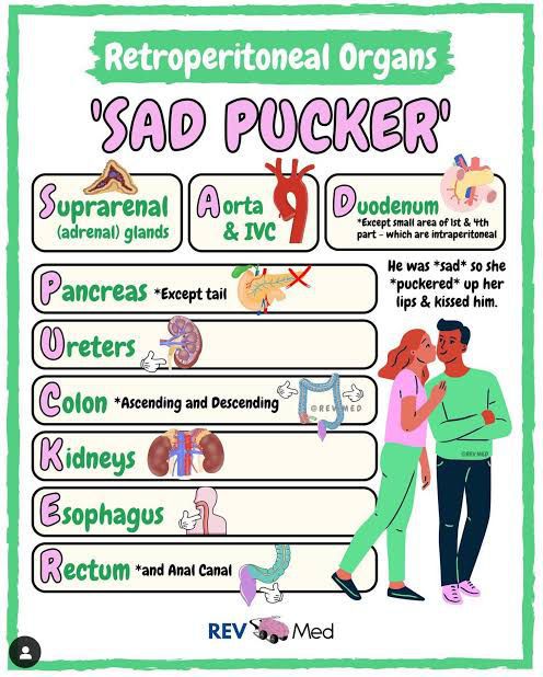 Retroperitoneal structure mnemonic