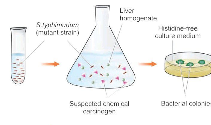 A mutagen is a substance that can permanently alter the genetic composition of a cell. Ames’ test evaluates the ability of a chemical to induce mutation in the mutant strain of Salmonella typhimurium that cannot synthesise histidine