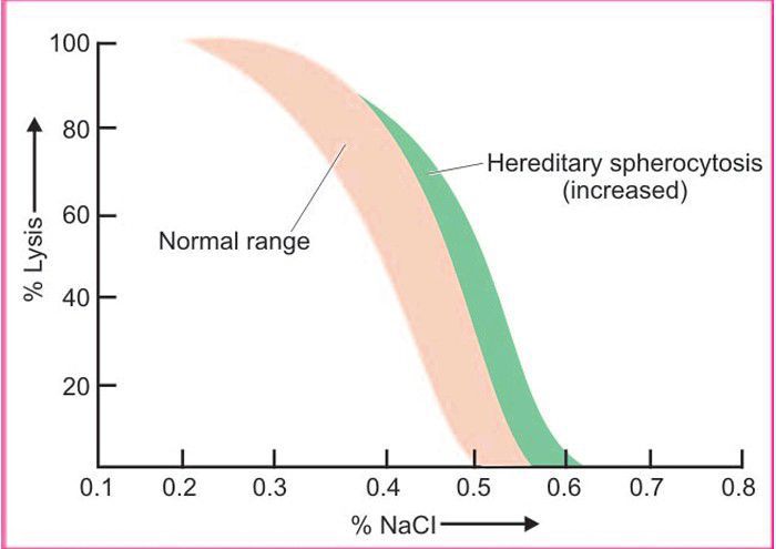 Osmotic fragility test in hereditary spherocytosis showing increased fragility.