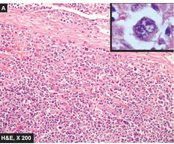 Nodular sclerosis type. There are bands of collagen forming nodules and characteristic lacunar RS cells.