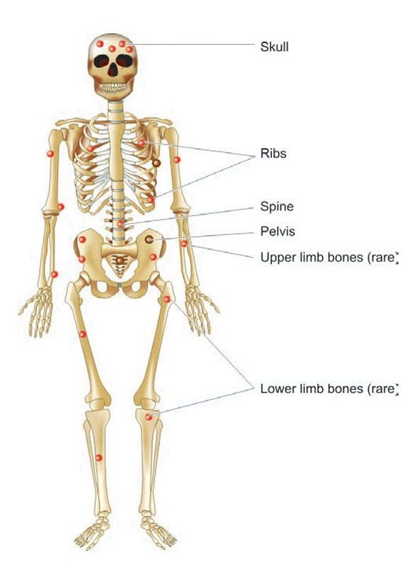 The major sites of lesions in multiple myeloma.