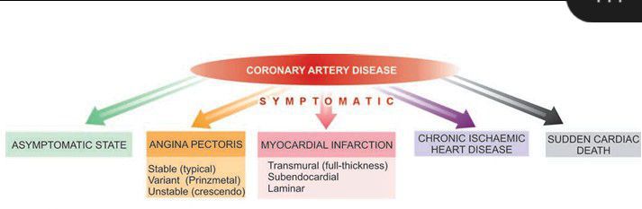 Spectrum of coronary ischaemic manifestations.
