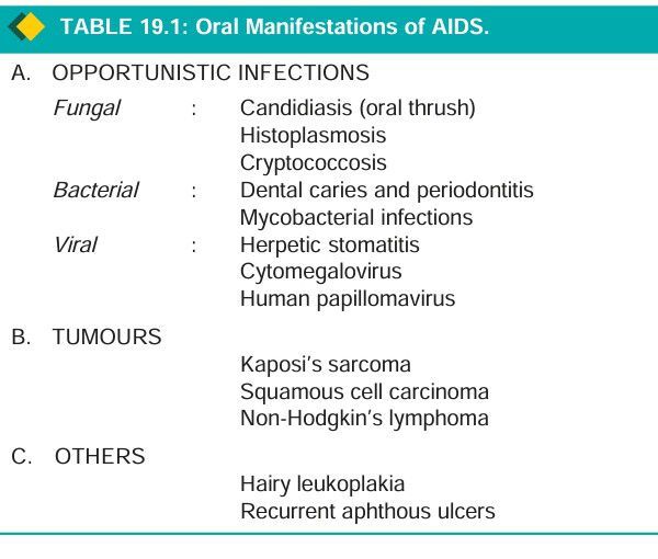 HIV infection of low grade as well as fullblown acquired immunodeficiency syndrome (AIDS) are associated with oral manifestation