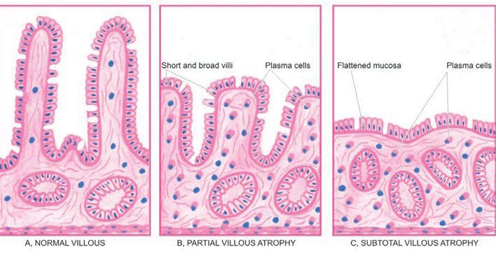Jejunal biopsy diagrammatic appearance in malabsorption syndrome.