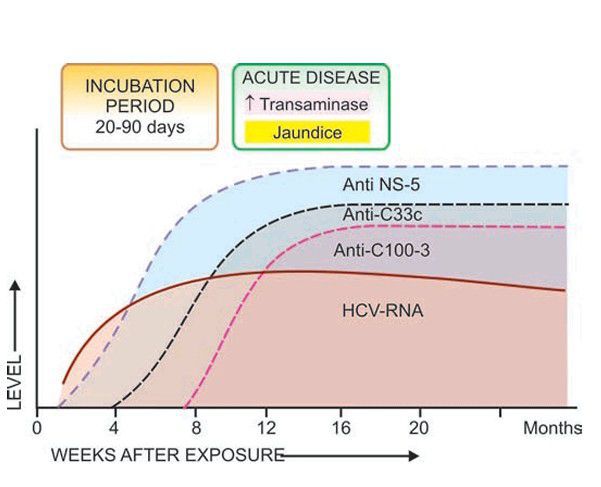 Sequence of serologic and viral markers of HCV infection.