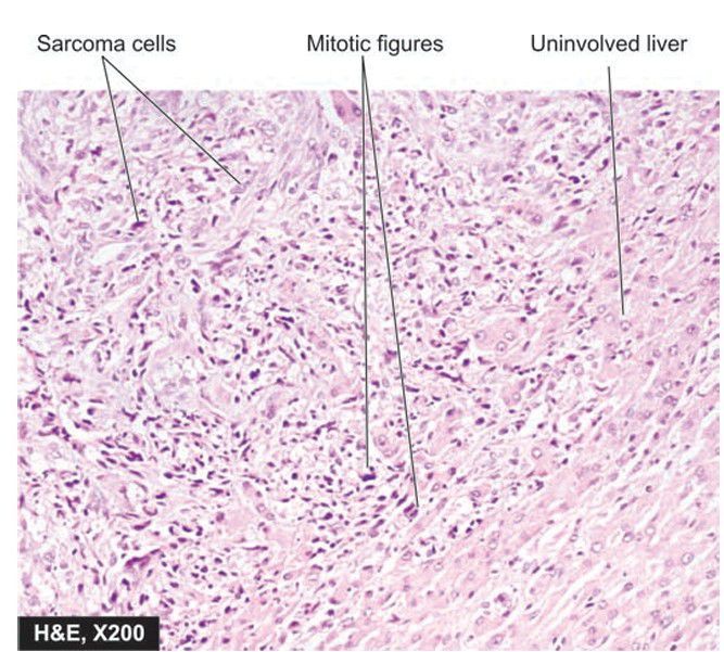 Metastatic deposits from undifferentiated sarcoma in the liver