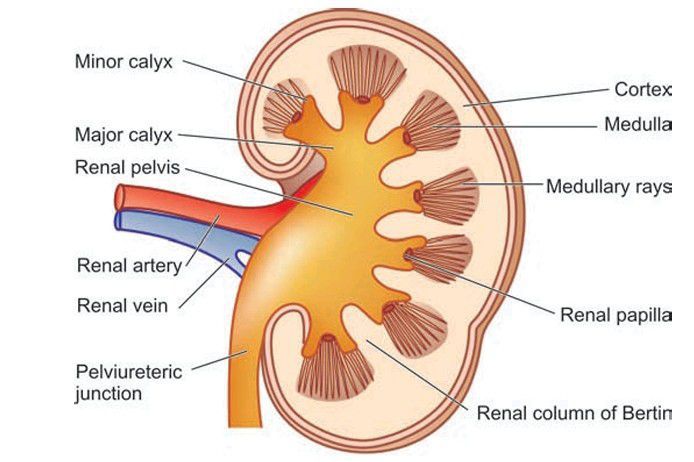 Cross-section of the kidney showing gross structures