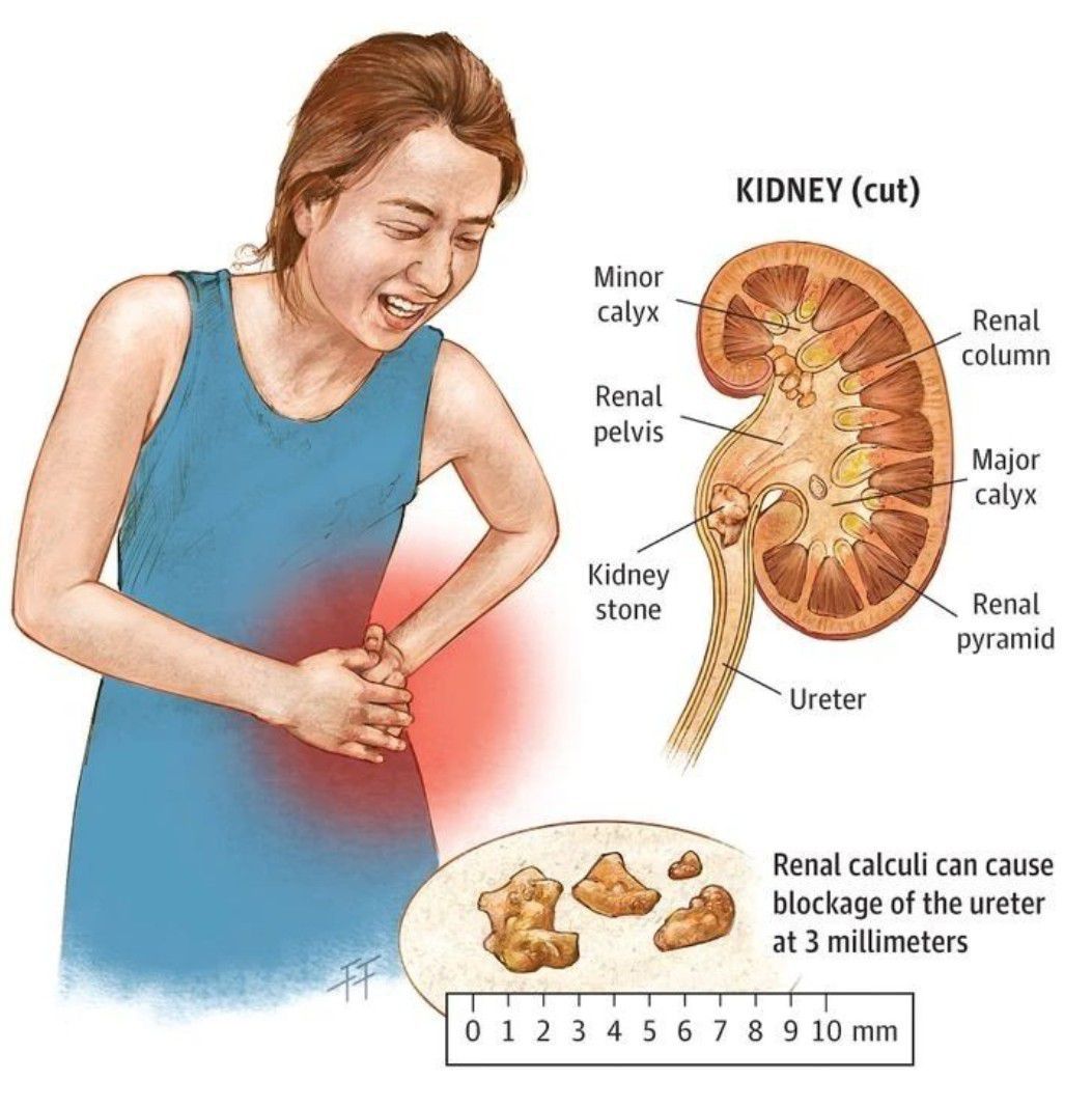 Kidney stone disease, also known as renal calculus disease, nephrolithiasis or urolithiasis, is a crystallopathy where a solid piece of material develops in the urinary tract. Renal calculi typically form in the kidney and leave the body in the urine stream. A small calculus may pass without causing symptoms.