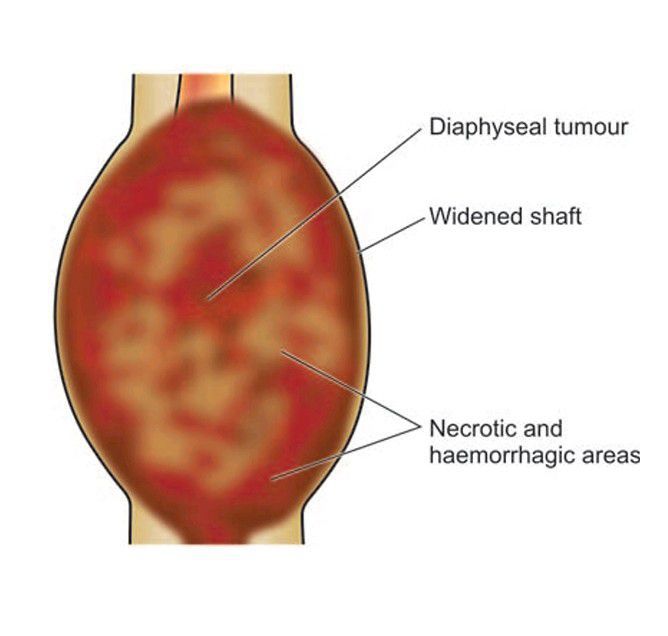 Ewing’s sarcoma. The tumour is largely extending into soft tissues including the skeletal muscle. Cut surface of the tumour is grey-white, cystic, soft and friable.