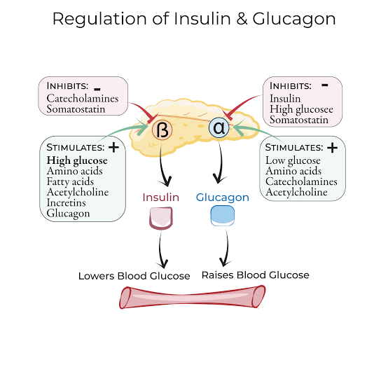 Regulations of insulin and glucagon