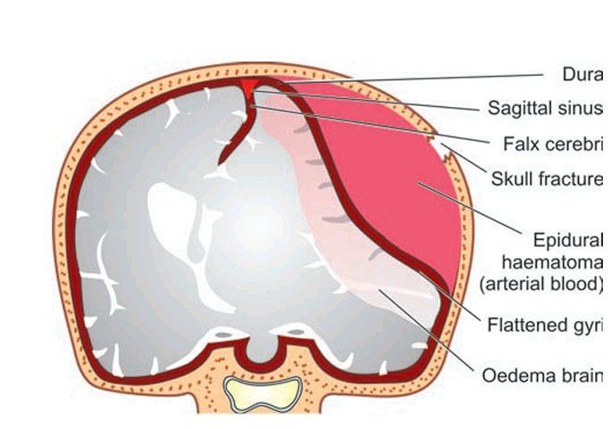 Epidural haematoma often results from rupture of artery following skull fracture resulting in accumulation of arterial blood between the skull and the dura.