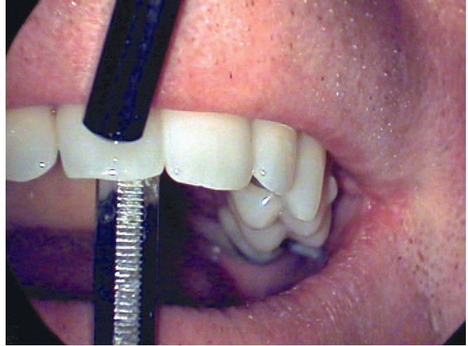 Mobility testing of a tooth, using the back ends of two mirror handles.