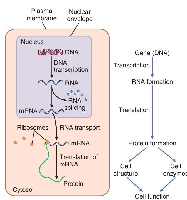 The general schema by which genes control cell function. mRNA, messenger RNA.