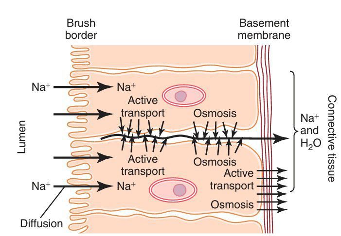 The basic mechanism of active transport across a layer of cells.