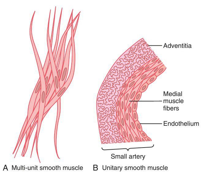 Multi-unit (A) and unitary (B) smooth muscle.