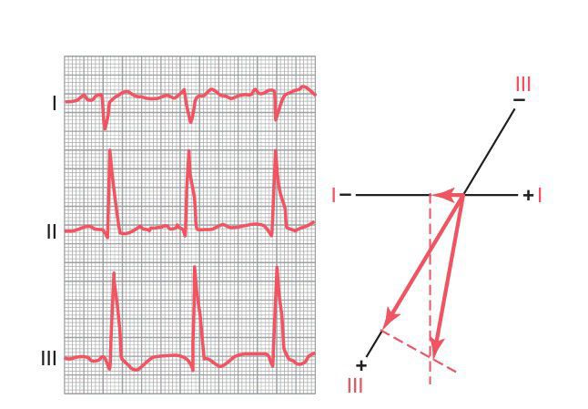 Right axis deviation caused by right bundle branch block. Note also the greatly prolonged QRS complex.