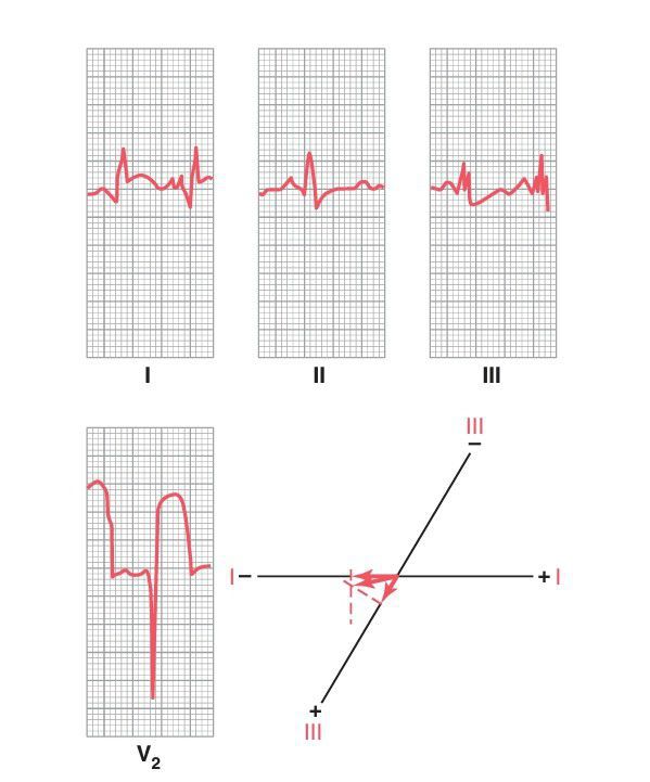 Current of injury in acute anterior wall infarction. Note the intense injury potential in lead V2