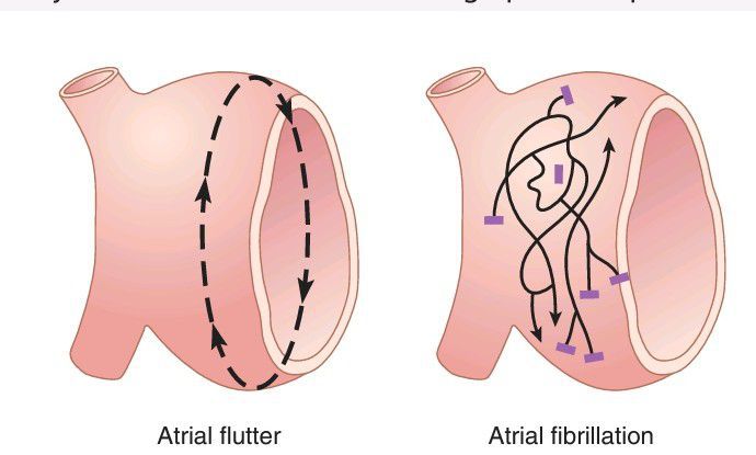 Pathways of impulses in atrial flutter and atrial f ibrillation.