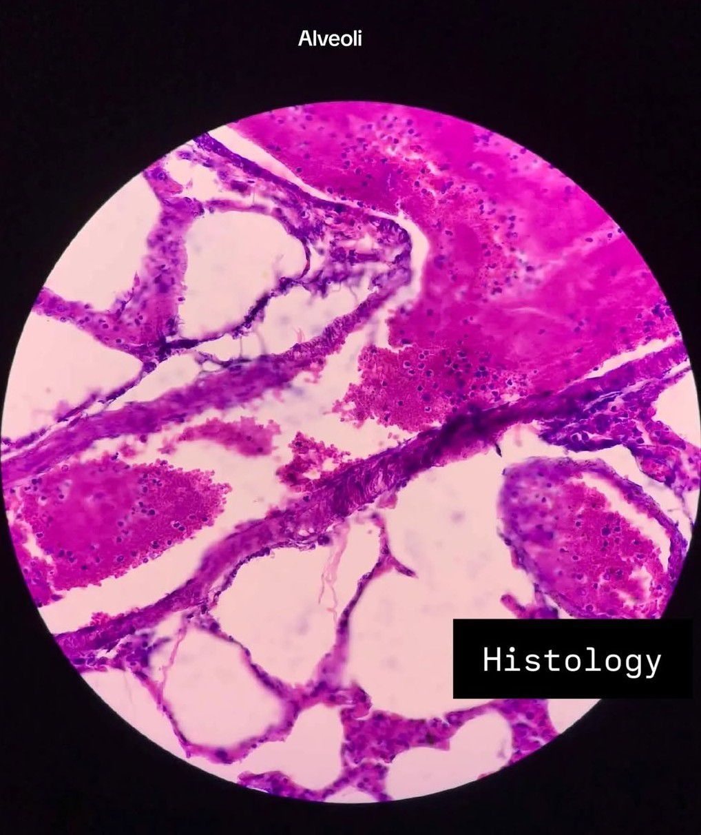The alveoli are responsible for the spongy nature of the lung. These alveoli are lined by flattened epithelial cells called pneumocytes with a single opening. The alveolar wall or septum is made up of three tissue components: surface epithelium, supporting tissue, and an extensive network of continuous capillaries.